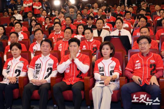 국민의힘 김용태, 권성동 공동선대위원장 등 선대위 관계자들이 3일 오후 국회도서관에 마련된 제21대 대통령선거 개표상황실에서 개표 방송을 시청하고 있다. 지상파 방송 3사 출구조사에서 더불어민주당 이재명 후보가 51.7%, 국민의힘 김문수 후보가 39.3%, 개혁신당 이준석 후보는 7.7%의 득표율을 각각 보인 것으로 나타났다.저작권자 © CBS 노컷뉴스 무단전재 및 재배포 금지