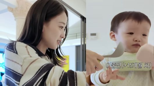 손연재가 소개한 주인공은 바로 15개월 차 아들 이준연 군. 그는 이유식을 먹이며 갓 1살이 넘은 아들 인터뷰를 시도했지만, 처참하게 실패해 웃음을 안겼다.