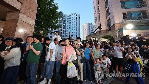 출구조사 발표 환호하는 이재명 후보 자택 동네 주민들 |