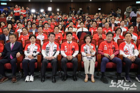 김 비대위원장과 나경원·안철수·양향자 등 공동선대위원장들은 첫 줄에 나란히 앉았고, 김문수 후보를 지지 선언한 손학규 전 바른미래당 대표도 양복 차림으로 양 위원장 옆에 착석했다. 그러나 8시 지상파 3사의 출구조사 결과가 발표되자, 화면을 응시하던 당 지도부는 일제히 굳은 표정을 감추지 못했다.