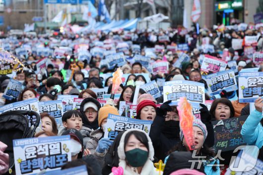 '12·3 비상계엄 사태' 등과 관련한 국회의 윤석열 대통령 탄핵소추안 2차 투표가 진행되는 14일 오후 광주 동구 금남로에서 내란수괴 윤석열 체포, 구속촉구 광주시민 6차 총궐기대회가 열려 시민들이 '탄핵소추안 가결'을 촉구하고 있다. 2024.12.14./뉴스1 ⓒ News1 김태성 기자 |