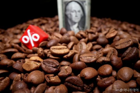 커피 원두와 미국 달러. /로이터=뉴스1 |
