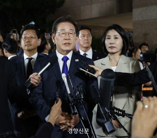 이재명 더불어민주당 대선 후보가 제21대 대통령 당선이 확실시된 3일 밤 인천 계양구 자택을 나서며 취재진에 소감을 밝히고 있다. 문재원 기자 |