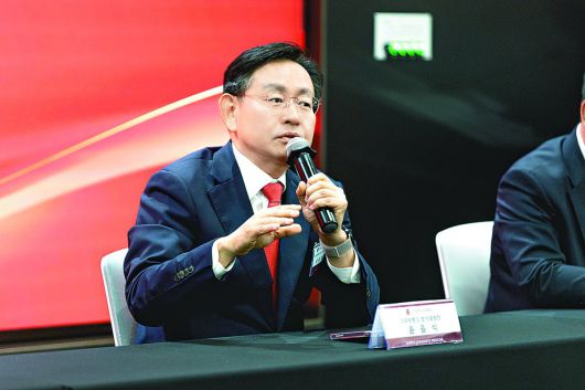 윤을식 고려대 의무부총장 겸 의료원장이 기자단 질의에 답변하고 있다. 고려대의료원은 26∼27일 의과대학 본관에서 ‘미래 혁신 2028 대전환’을 주제로 기자간담회를 개최했다. |