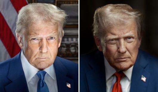 성조기 빼고 빨간 넥타이로 바꾼 트럼프 새 공식 사진 미국 백악관이 도널드 트럼프 미 대통령의 공식 사진을 2일 교체해 공개했다(오른쪽 사진). 올 초 재집권 직전 발표한 공식 사진(왼쪽 사진)과 비교할 때 눈을 찡그린 채 노려보는 모습은 비슷하다. 그러나 넥타이 색이 파란색에서 미국 공화당을 상징하는 빨간색으로 바뀌었고, 배경이 성조기에서 어두운 색조로 바뀌어 인물이 더 부각됐다. 백악관은 대통령의 공식 사진을 교체한 이유는 따로 설명하지 않았다. 사진 출처 백악관 X 계정 |