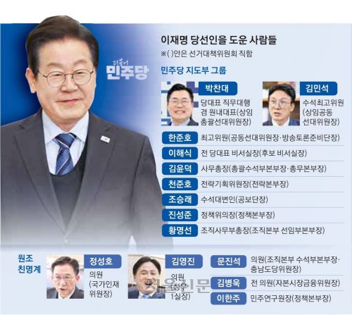 21대 대통령 선거에서 이재명 더불어민주당 후보가 승기를 잡은 것에 대해 민주당 내에서는 당내 탄탄한 기반을 바탕으로 선거운동 기간 내내 ‘단일대오’를 이룬 게 효과를 거둔 것이라는 분석이 나온다. 원조 친명(친이재명)계 인사들과 경기 성남시장·경기지사 시절부터 이 당선인을 가까이에서 보좌한 실무 참모진, 그리고 정책자문 그룹은 이재명 정부를 이루는 밑바탕이 될 것으로 보인다.