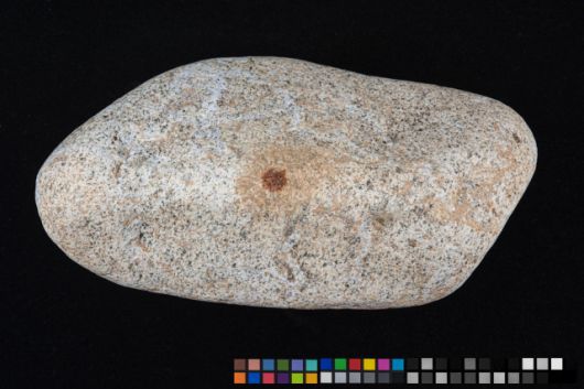 연구팀은 약 20cm 길이의 조약돌 중앙에 빨간 점 하나가 있는 것을 수상히 여겨 연구를 시작했다. 정밀조사 결과 천연 토양 색소인 황토색으로 나타났다. 해당 색소에는 철 산화물과 점토 광물이 포함돼 있었는데 이는 동굴 내부나 주변 다른 곳에서는 전혀 발견되지 않은 성분으로 나타났다.