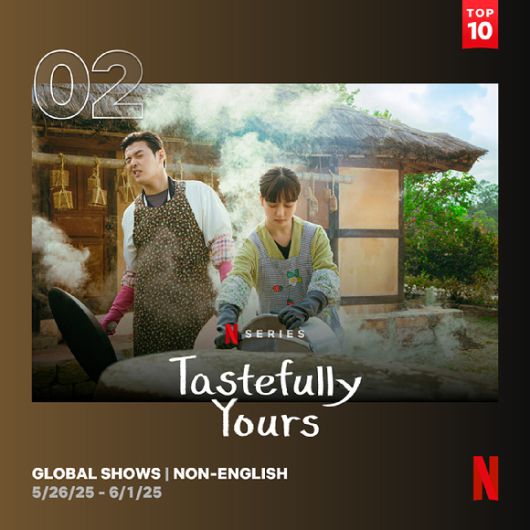 4일 넷플릭스 TOP 10 투둠 웹사이트에 따르면 지니TV 드라마 '당신의 맛'은 지난 5월 26일부터 6월 1일까지 4,000,000 시청수(시청 시간을 작품의 총 러닝 타임으로 나눈 값)를 기록하며 넷플릭스 글로벌 TOP 10 시리즈 부문 비영어 2위를 차지했다.