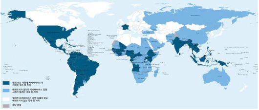 지카바이러스 전파 국가(영토), 2024. 5월 기준(이미지=세계보건기구) |