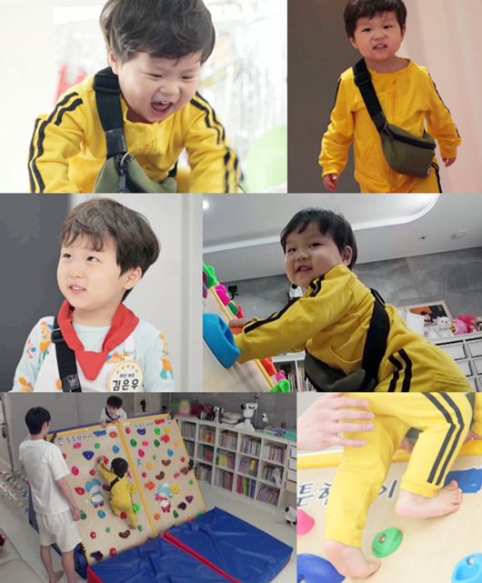 24개월 정우는 자신의 키보다 두 배를 뛰어넘는 크기와 무려 70도 경사를 지닌 보기만 해도 웅장해지는 클라이밍 보드를 발견하자 함박미소와 함께 돌진한다. 클라이밍 보드에 찰싹 붙은 정우는 자연스럽게 암벽 등반 자세를 취해 눈길을 끈다.