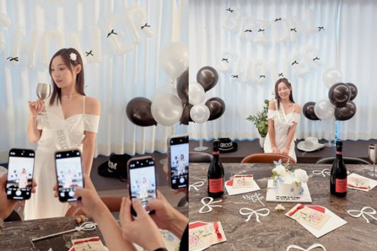 이날 공개된 사진 속 민은 오프숄더 드레스를 입고 브라이덜 샤워를 즐기는 모습이다. 지인들의 축하 속 행복한 미소가 눈길을 끈다.