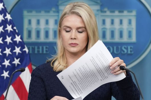 캐롤라인 래빗 미국 백악관 대변인이 3일(현지시간) 한국의 6·3 대선 결과에 대한 입장을 묻는 질문에 트럼프 행정부의 공식 반응을 담은 답변지를 찾지 못해 발표를 하지 못하는 일이 벌어졌다. [AP] |