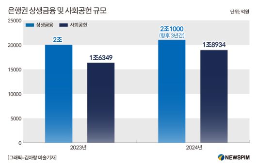 상생금융 외에도 자발적인 사회공헌 규모도 상당하다. 은행연합회가 집계한 전 은행권의 2023년 사회공헌활동 규모는 1년만에 32%나 증가하며 1조6000억원을 넘어섰다. 지난해에는 1조8934억원으로 집계됐다. 최근 2년간 시행한 상생금융과 사회공헌을 합치면 7조5000억원이 넘는 막대한 규모다.