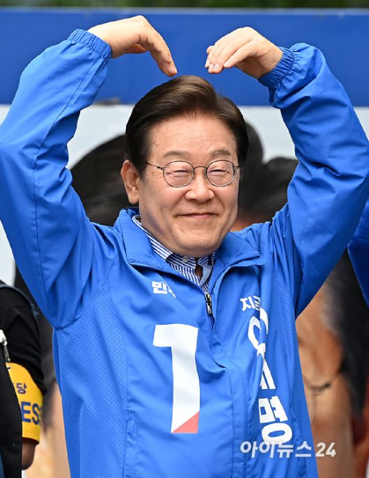 이재명 대통령(당시 더불어민주당 대선 후보)이 지난 2일 오후 경기도 성남시 야탑역 광장에서 열린 선거유세에서 지지를 호소하고 있다.[사진=곽영래 기자] |