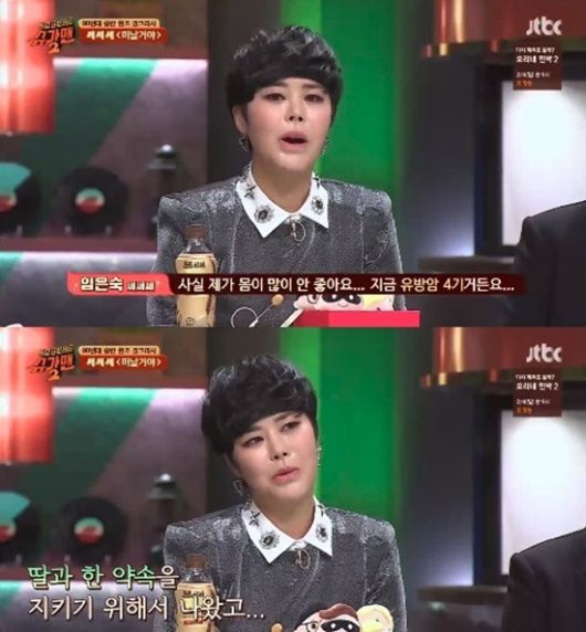 임은숙은 사망 4개월 전인 2018년 1월, JTBC '슈가맨2'에 쎄쎄쎄 멤버들과 함께 출연하기도 했다. 당시 그는 유방암 4기였으며 이미 간까지 전이됐던 상황에서 22년 만에 무대를 꾸며 화제를 모았다.