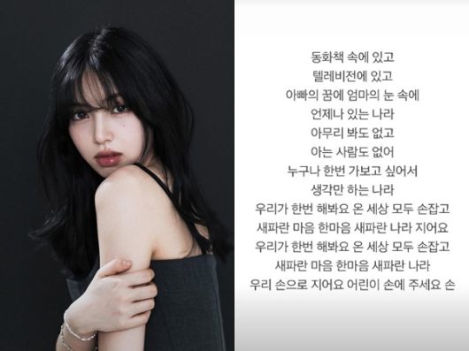 해당 글에는 “우리가 한번 해봐요 온 세상 모두 손잡고”, “새파란 마음 한마음 새파란 나라 지어요” 등 애니메이션 ‘뽀로로’ 속 ‘파란나라’의 노래 가사가 적혀 있어 눈길을 끌었다.