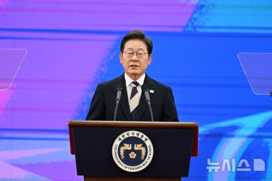 [서울=뉴시스] 국회사진기자단 = 제21대 대한민국 대통령으로 취임한 이재명 대통령이 4일 오전 국회 로텐더홀에서 취임사를 하고 있다.2025.06.04. photo@newsis.com |