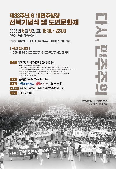전북민주화운동기념사업회가 오는 9일 전주 풍남문 광장에서 '38주년 6·10민주항쟁 전북 기념식과 도민문화제'를 연다.