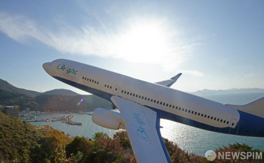 [부산=뉴스핌] 최지환 기자 = 9일 오후 부산 강서구 가덕도신공항 예정지 부지가 내려다보이는 대항전망대에 위치한 비행기 모형. 2024.12.09 choipix16@newspim.com |
