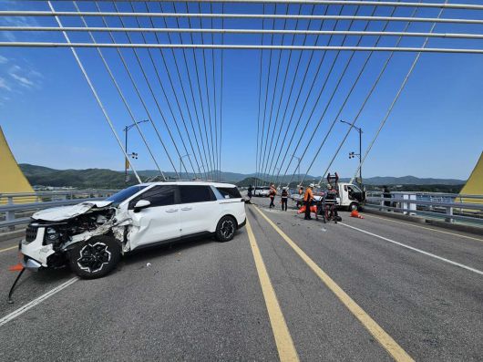 4일 오전 9시 20분경 강원 춘천시 춘천대교에서 차량 여러 대가 연이어 충돌하는 사고가 났다.