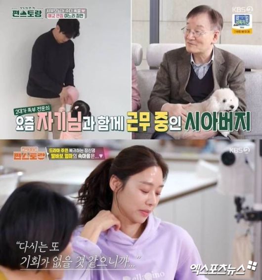 남편의 논란으로 3년 만에 본업 복귀에 나서는 장신영은 지난달 30일 방송에서 "긴장된다. 안 되면 거짓말이다. 잘해야 된다는 긴장감도 있다"고 말했다. 장신영이 복귀하는 드라마를 두고 어머니와 대화를 나눈 것. 그러나 KBS 드라마도 아닌 타사 드라마를, 가족 논란 끝 복귀한 장신영이 '편스토랑'에서 한다니 어색한 그림이 아닐 수 없다.
