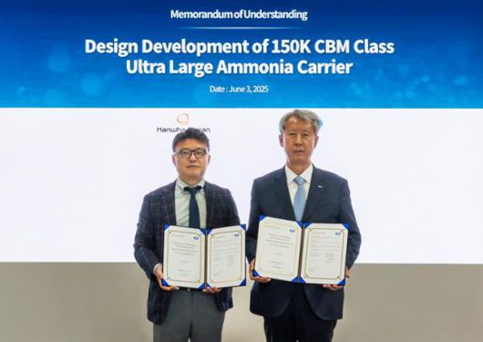 이번 MOU로 한화오션과 KR은 15만 큐빅미터(CBM)급 초대형 암모니아 운반선을 개발한다. 현재 건조되고 있는 암모니아 운반선은 9만3,000CBM급이 가장 큰 사이즈다. 암모니아는 연소 시 이산화탄소가 전혀 배출되지 않아 앞으로 무탄소 시대를 이끌어 갈 대표적인 연료로 주목받고 있다. 한화오션은 또한 한국선급과 액화천연가스(LNG) 운반선 뱃머리의 선원 등이 지낼 수 있는 선수거주구 배치 설계 변경을 위한 MOU도 체결했다. 선수거주구 배치 설계를 바꾸면 에너지 절감 장치를 가장 알맞은 곳에 배치해 친환경 선박 설계로 이어질 수 있다.