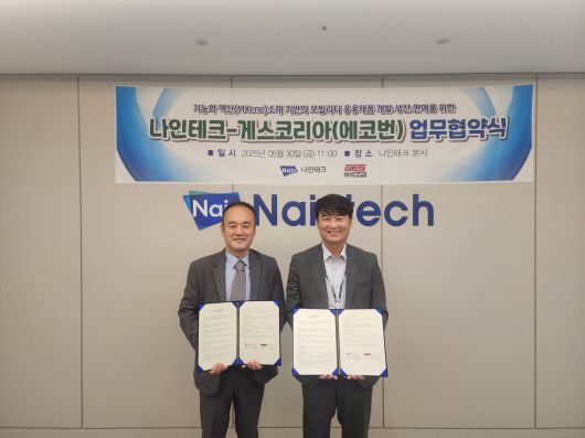 나인테크가 차량용 연료첨가제및 프리미엄 윤활제 기업 게스코리아(GES Korea)와 함께 기능화 맥신(MXene) 기반 모빌리티용 기능성 제품 생산 및 사업화를 위한 전략적 업무협약(MOU)을 맺었다고 4일 밝혔다.