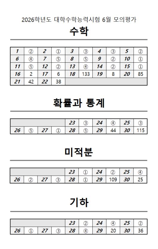 2025년 6월 전국연합학력평가(모의고사, 모평) 국어, 수학 영역 정답, 답지가 공개됐다.