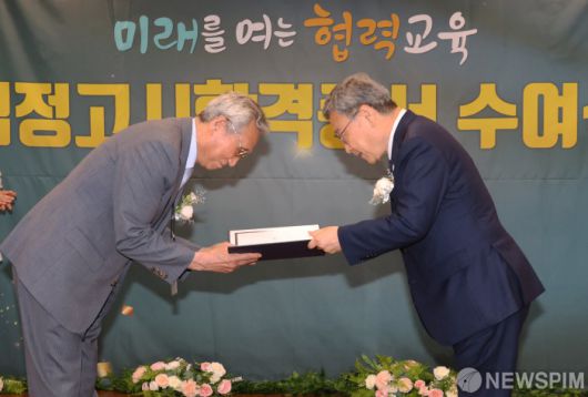 [서울=뉴스핌] 양윤모 기자 = 정근식 서울시교육감이 4일 오후 서울시교육청 강당에서 개최된 ‘2025년도 제1회 초·중·고등학교 졸업 학력 검정고시 합격증서 수여식’에 참석 합격증서를 전달하고 있다. 올 1회 검정고시는 초졸 420명, 중졸 806명, 고졸 2천761명이 합격했다. 2025.06.04 yym58@newspim.com