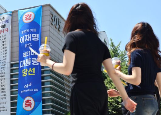 대통령 배출한 중앙대 4일 서울 동작구 중앙대 캠퍼스에 이재명 대통령의 당선을 축하하는 현수막이 걸려 있다. 연합뉴스 |