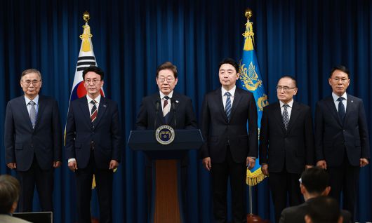 이 대통령은 이날 서울 용산 대통령실 브리핑룸에서 직접 기자회견을 열고, 국무총리 후보자·국정원장 후보자·대통령실 주요 참모진 등 초대 인선을 직접 발표했다.