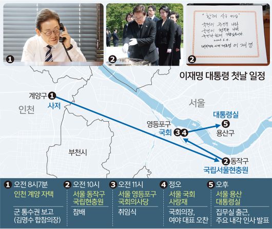 정식 행사는 다음달 17일 제헌절 기념식과 함께 ‘임명식’으로 개최하기로 했다. 대통령실은 “‘국민주권정부 탄생의 주체는 주권자인 국민’이라는 이 대통령의 의중을 반영했다”면서 “대한민국 헌법을 공포한 날, 우리의 헌법 정신을 되새기고 헌정 질서를 굳건히 수호하는 대통령이 되겠다는 의미를 담고 있다”고 설명했다.