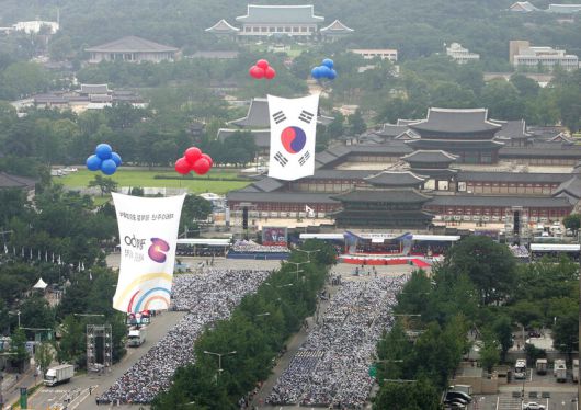2005년 8월15일 광복 60주년 경축식이 서울 광화문 앞에서 열리고 있다. 연합뉴스 |