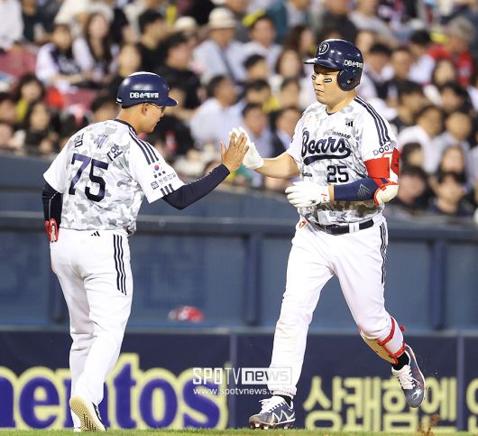 [스포티비뉴스=잠실, 곽혜미 기자] 2025 신한 SOL Bank KBO리그 두산 베어스와 KIA 타이거즈의 경기가 4일 오후 서울 송파구 잠실야구장에서 열렸다. 5회말 2사 두산 양의지가 동점 솔로포를 날리고 있다. <저작권자 ⓒ SPOTV NEWS. 무단전재 및 재배포 금지>