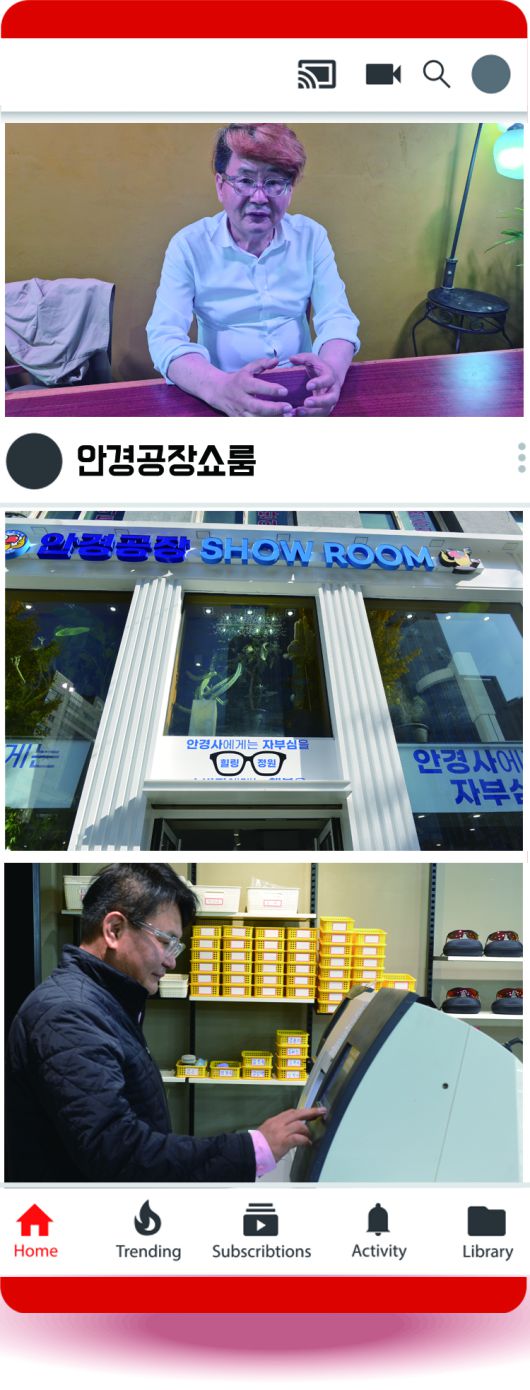 특히 유튜브 채널을 통해 안경업계 유통질서 건전화와 안경사 위상 제고를 위한 컨텐츠를 개발, 창출하고 있기도 한 강상구 대표는 안경공장쇼룸 유튜브 구독자 수만 12만명을 넘어섰다. 현재 500개 가까운 영상 컨텐츠가 업로드 돼 있는데, 인기 동영상의 경우에는 조회수가 400만회를 넘기기도 했다. 강 대표는 또 검안 장비에만 수억원을 투자하는 등 안경원과 안경사 가치를 높이기 위한 노력도 지속하고 있다.