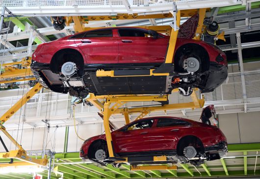 4일 독일 라슈타트에 있는 메르세데스-벤츠 공장에서 두 대의 메르세데스-벤츠 CLA 모델이 생산되고 있다. [EPA] |