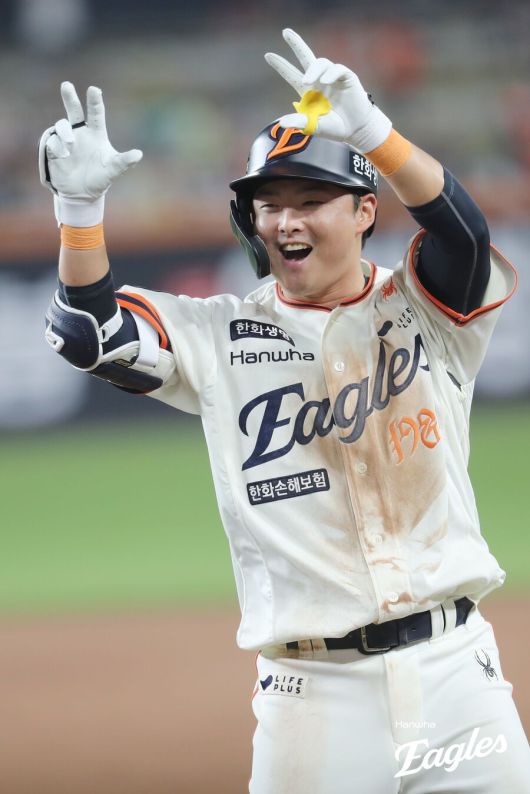 최인호의 타구는 1루수 오윤석에게로 향했다. 오윤석은 직접 1루를 밟으려고 했으나 최인호의 발이 더 빨랐다. 그 사이 2루에 있던 이도윤이 3루를 돌아 홈플레이트를 파고 들었고 한화는 그렇게 4-2 리드를 가져갔다.
