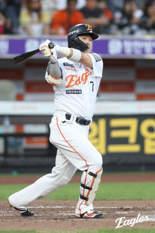 한화의 야구는 7회부터 진짜 시작이었다. 7회말 선두타자 채은성이 풀카운트 접전 끝에 좌전 안타로 포문을 열었고 한화는 대주자 이원석을 투입해 득점 확률을 높이고자 했다. 1사 후 김태연이 좌전 안타를 쳤고 최재훈의 타석에 더블스틸을 성공, KT 배터리를 압박했다.