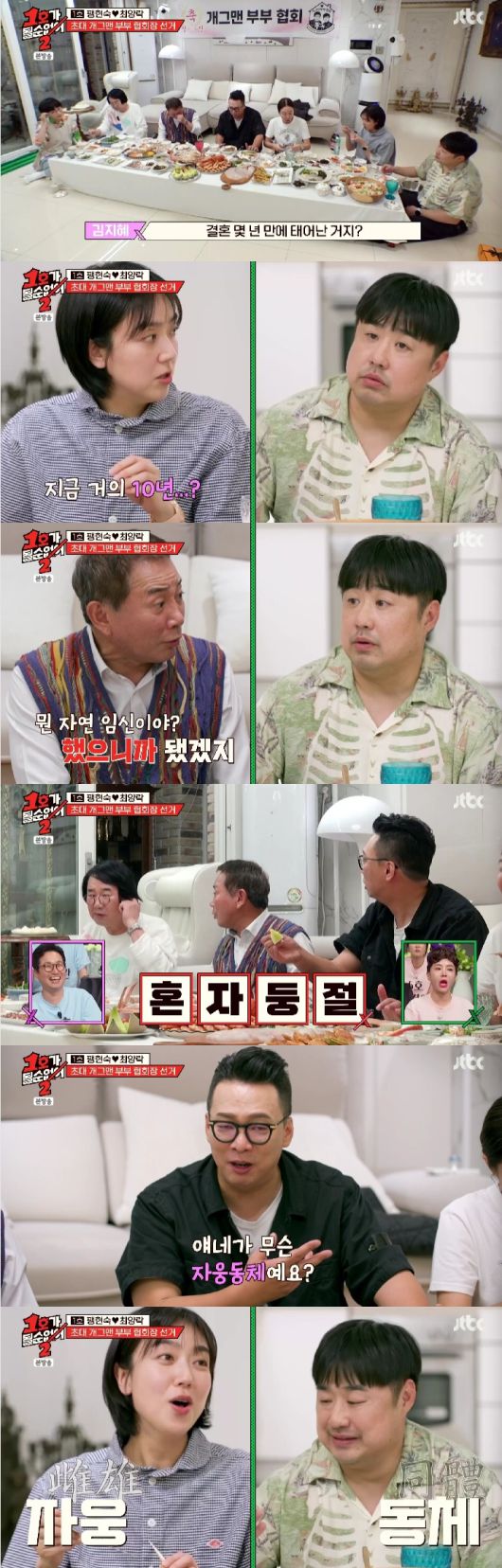 4일 방송한 JTBC ‘1호가 될 순 없어2’에서 개그맨 부부들은 개그맨 부부 협회 창단을 앞두고 팽락 하우스에 모였다.
