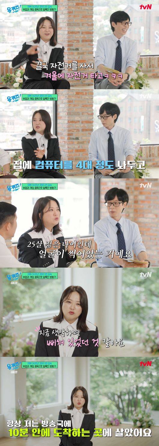이후 김숙은 게임에 빠졌다고. 그는 “너무 행복했다. 게임 자산이 2조였다. 여러가지 게임을 했다”며 “집에 컴퓨터를 4대 정도 놔두고 PC방처럼. 그때는 진짜 중독이었다. 그때 밤을 완전 다 새우고 아침 10시쯤 잠에 든다. 저녁에 일어나서 아침을 먹고 담배 사러 동네 한 바퀴 돌고. 그때 25~26살이었다. 암흑기였다”고 당시를 회상했다.