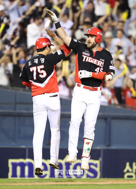 KIA 타이거즈는 4일 서울 잠실야구장에서 열린 '2025 신한 SOL뱅크 KBO리그' 두산 베어스와 경기에서 8-3으로 이겼다. 득점 공방전이 펼쳐진 가운데 6번으로 타순이 내려간 위즈덤이 결승 2점 홈런 포함 3안타로 활약했다. 위즈덤의 안타가 나온 공격에서는 반드시 KIA의 득점이 나왔다. 최원준은 실점을 막는 호수비에 이어 승리에 쐐기를 박는 2점 홈런을 날렸다.