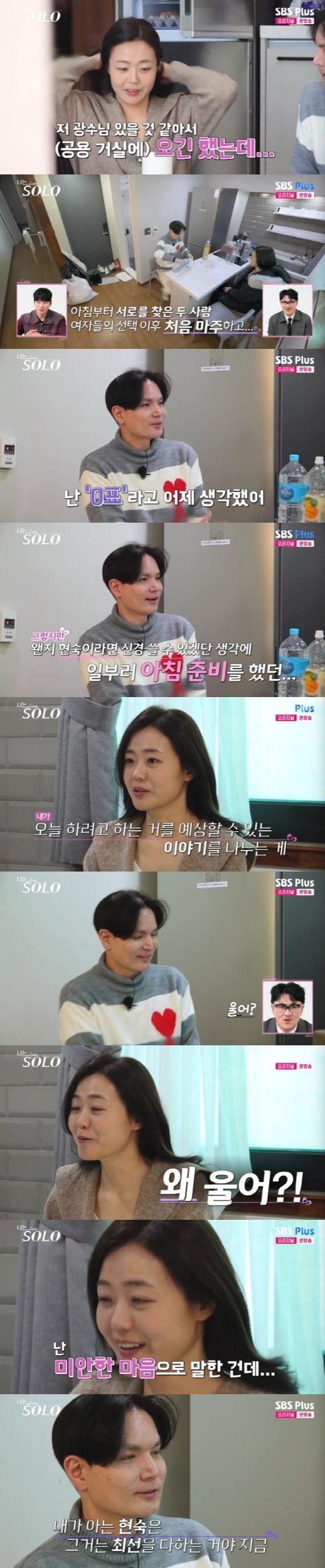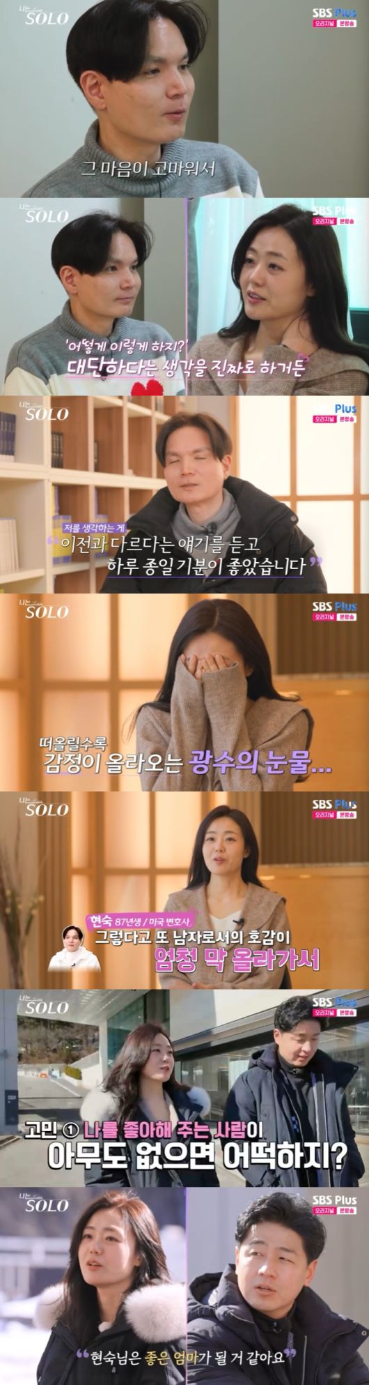 갑자기 광수는 "너무 감동인데"라며 울먹였다. 현숙은 "난 사실 미안한 마음인 거다"라면서 광수의 눈물에 당황했다. 광수는"오늘 아침에 그냥 나 생각해서 와준 거 아니냐. 내가 아는 현숙은 그거는 최선을 다하는 거다. 그 마음이 고마워서 감동이다"라며 눈물을 훔쳤다.