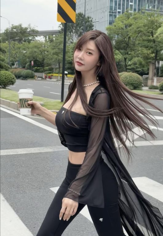 사진 속 클라라는 중국 항저우에서 블랙 튜브톱에 부츠컷 레깅스로 몸매를 뽐내고 있으며 실외에서는 시스루인 롱 카디건을 걸쳐 멋을 냈다.