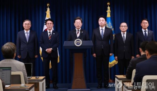이재명 대통령은 4일 오후 서울 용산 대통령실 브리핑룸에서 직접 6명의 인선안을 발표했다. 국무총리 후보자에 김민석 더불어민주당 의원, 국정원장 후보자에 이종석 전 통일부 장관을 지명했다. 또 △대통령 비서실장에 강훈식 민주당 의원을 △안보실장에 위성락 민주당 의원을 △경호처장에 황인권 전 육군 대장을 △대변인에는 강유정 민주당 의원을 각각 임명했다.