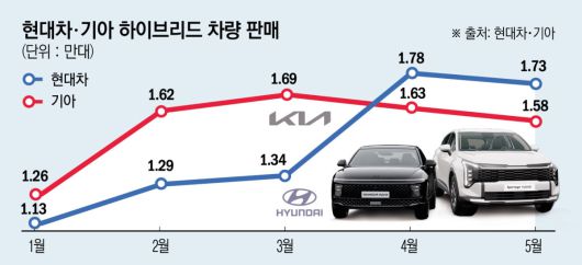 국내 하이브리드차 시장을 놓고 현대자동차 그룹 내 경쟁이 달아오르고 있다. 올해 초까지만 해도 기아가 앞서 있었지만 2분기 들어 현대차가 반격에 성공하며 팽팽한 접전 중이다. 전기차 캐즘(Chasm·일시적 수요 정체)속에 그룹 내 하이브리드 시장 주도권 다툼이 본격화하는 양상이다.