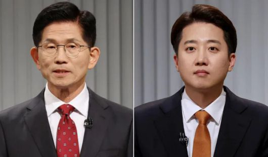 지난달 23일 김문수 국민의힘 대통령 후보(왼쪽)와 이준석 개혁신당 대통령 후보가 중앙선거방송토론위원회 주관 제21대 대통령선거 2차 후보자토론회 시작에 앞서 토론 준비를 하고 있다. 국회사진기자단 |