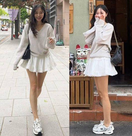 뉴발란스 스니커즈, 블랙 체인백, 내추럴한 웨이브 헤어까지 더해져 데이트하듯 설레는 분위기가 느껴졌다.사진=이솔이 SNS |