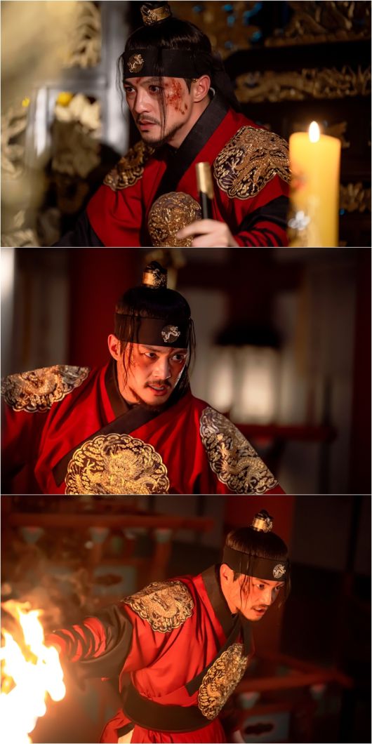 공개된 스틸 속 이정은 섬뜩한 눈빛으로 용상을 지키고 앉아있는 모습. 얼굴에 돋아난 화상 흉터 자국이 그가 현재 팔척귀에 빙의 됐음을 드러내 보는 이들을 소름 끼치게 한다. 사랑하는 중전(한소은)을 향한 다정하고 어진 왕의 눈빛, 백성들의 평안을 꿈꾸던 총명하고 어질던 임금의 표정은 사라지고 원한과 살기만이 남아있다. 앞서 이정이 팔척귀의 뿌리 깊은 원한을 풀어주기 위해 천도재까지 지냈던 만큼, 대체 무슨 연유로 팔척귀에 다시 빙의 된 것일지 궁금증이 치솟는다.