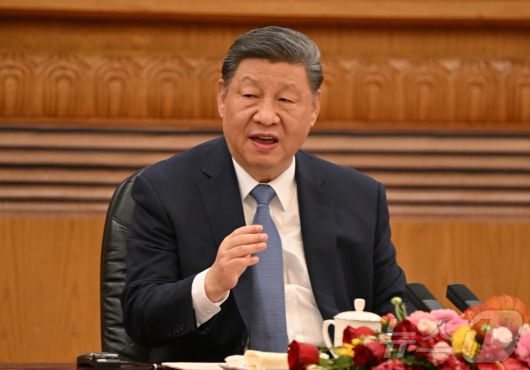 시진핑 중국 국가주석이 2025년 3월 28일 베이징 인민대회당에서 열린 외국 기업인들과의 회의에서 발언하고 있다. ⓒ AFP=뉴스1 ⓒ News1 구경진 기자 |