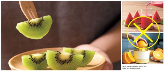 과일의 당분은 구조가 단순한 ‘단순당’이다. 더 이상 분자구조를 쪼갤 수 없을 만큼 구조가 단순해 빠르게 흡수된다. 액체로 마시면 더 빠르게 흡수돼 혈당을 급속히 올린다. 간에 부담이 되고, 신진대사(영양소의 흡수·배출 과정) 기능도 방해한다.